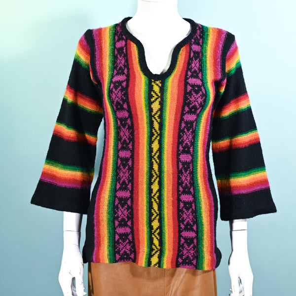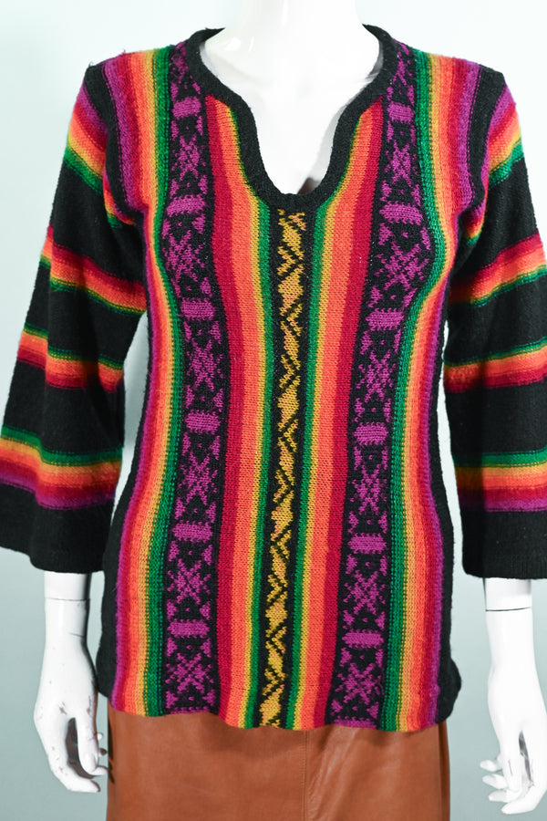 SOLD Vintage Bright Print Pullover Sweater, Organically Grown XS/S