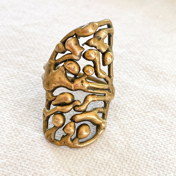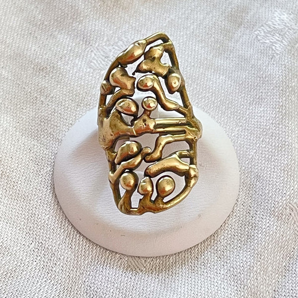 SOLD Vintage Biomorphic Brutalist Modernist Artisan Ring, Organic Spore