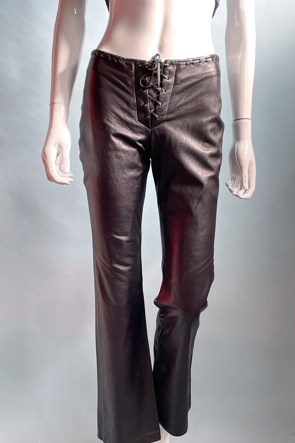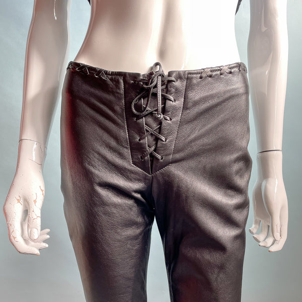 SOLD Vintage Black Leather Lace Up Pants, Hippie Slim Fit Pants XS
