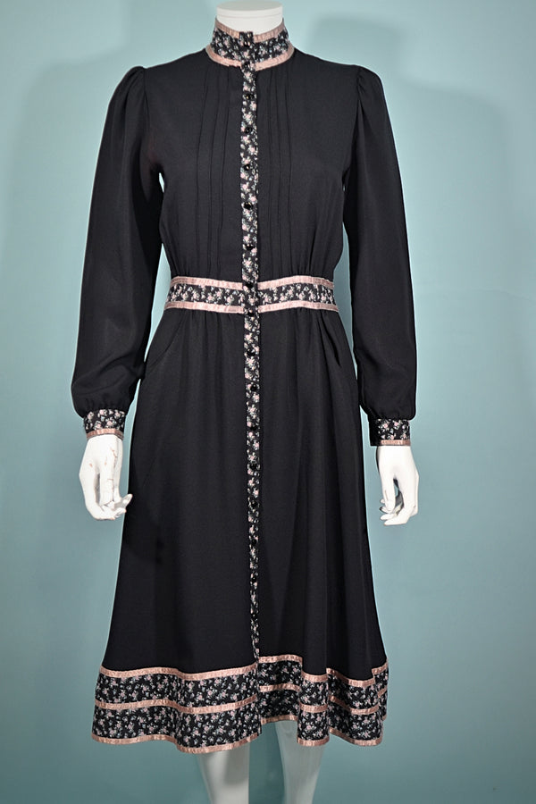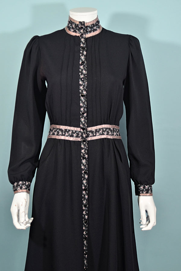 SOLD Vintage Black Gunne Sax Dress, Prairie Cottagecore Midi Dress