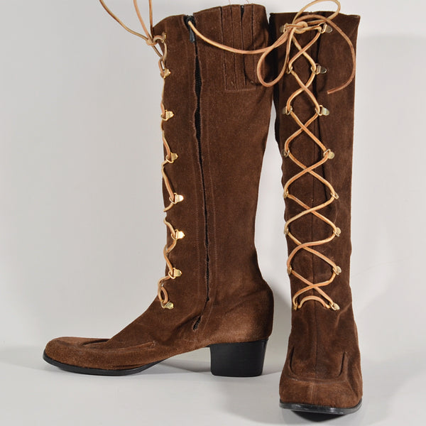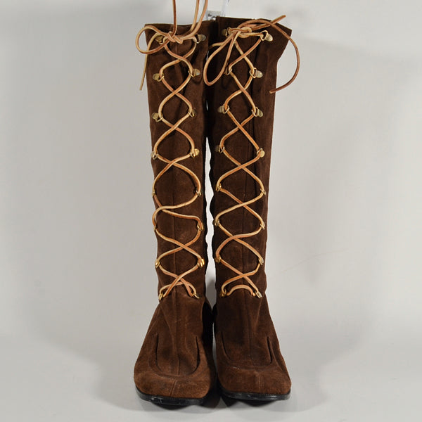 SOLD Vintage Brown Suede Lace Up Boots, For Costume, Study or Restoration Size 9 1/2-10 AS-IS