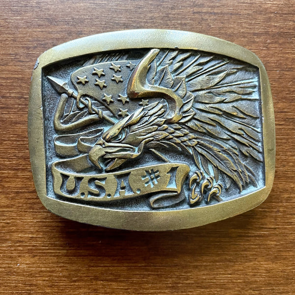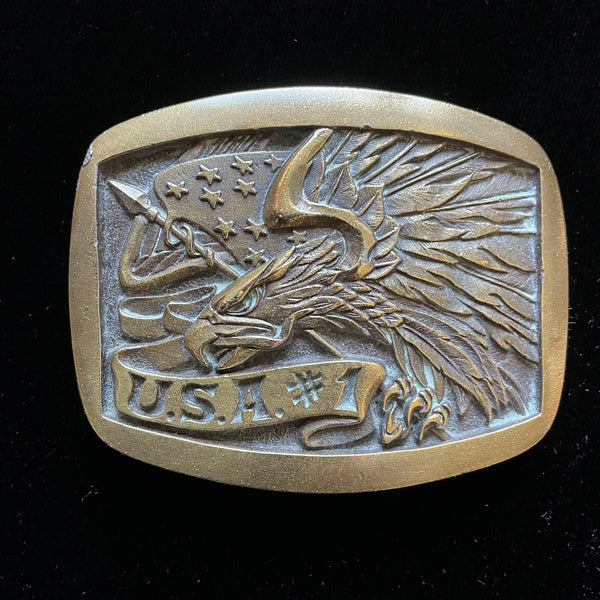 SOLD Vintage Brass Eagle USA#1 Belt Buckle, Indiana Metal Craft 133.3G