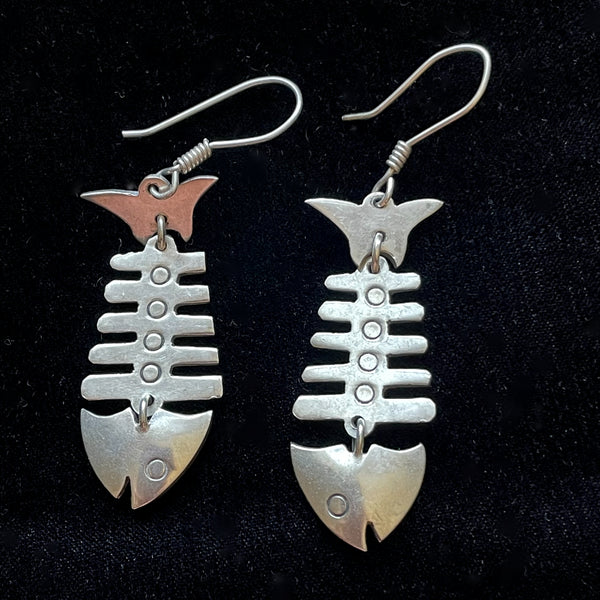 SOLD Vintage 925 Sterling Silver Articulated Fish Pierced Earrings, Taxco Mexico