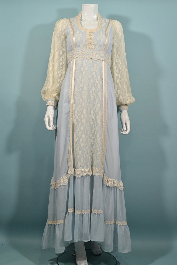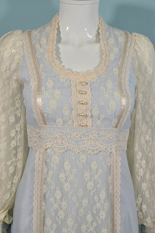 SOLD Vintage Blue Gunne Sax Maxi Dress, Prairie Victorian Cottagecore Fairy Dress 9