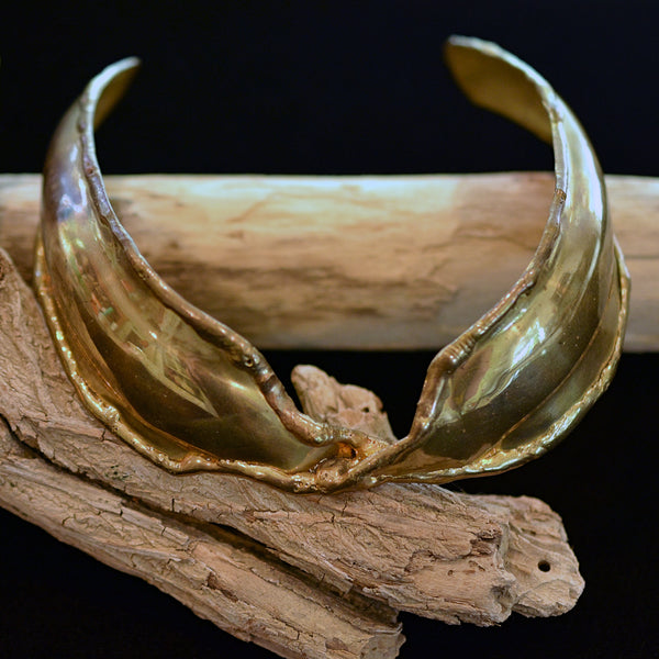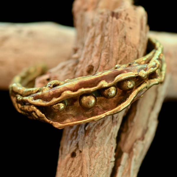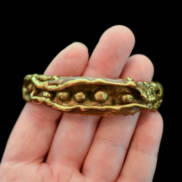 SOLD Vintage Artisan Brutalist Abstract Modernist Bracelet OOAK Handmade Pea Pod Cuff