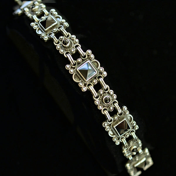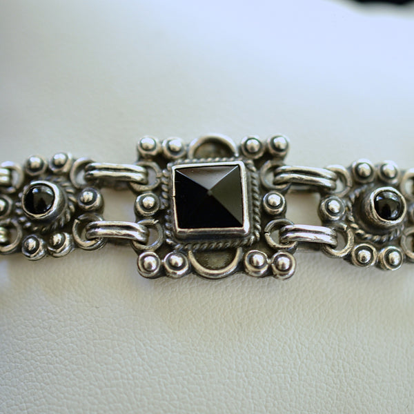 SOLD Vintage 925 Silver Bracelet, Black Stone Mexican Colonial Link Bracelet, 7" L