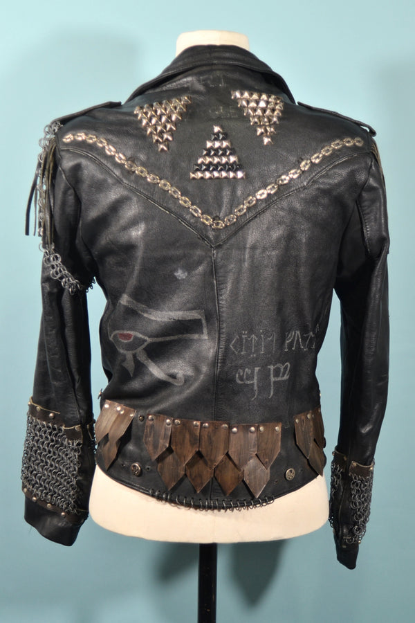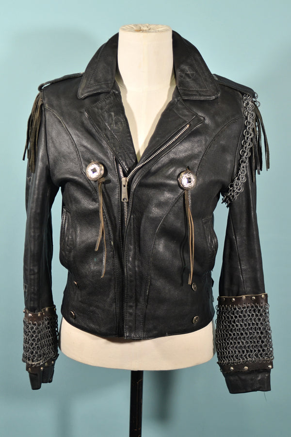 SOLD Vintage Black Leather Punk Motorcycle Jacket, OOAK Studs, Chainmaille SZ 40