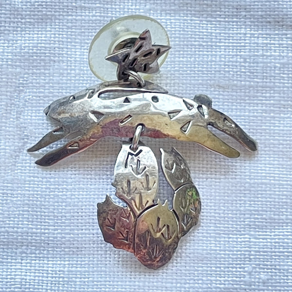 SOLD Vintage 925 Sterling Silver Pierced Earrings, Jumping Rabbits Taxco, Mexico