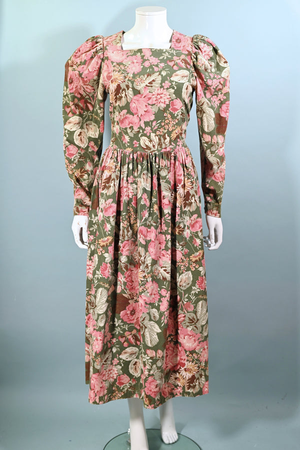 SOLD Vintage Laura Ashley Floral Print Corduroy Dress M