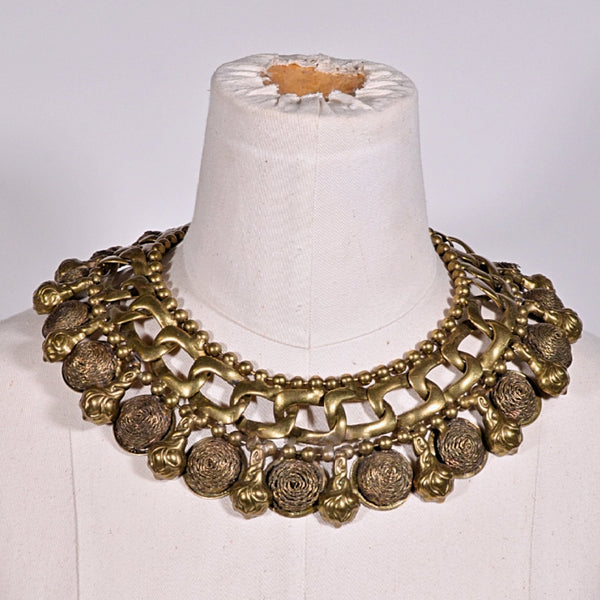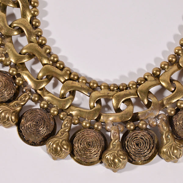 SOLD Vintage Lawrence VRBA Antique Gold Bib Necklace Etruscan Egyptian Revival Collar