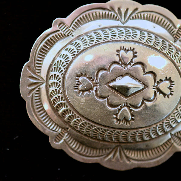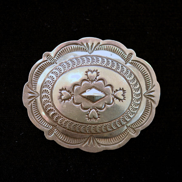 SOLD Vintage Hand Stamped Silver Concho Brooch, Hand Stamped, 13.4 Grams