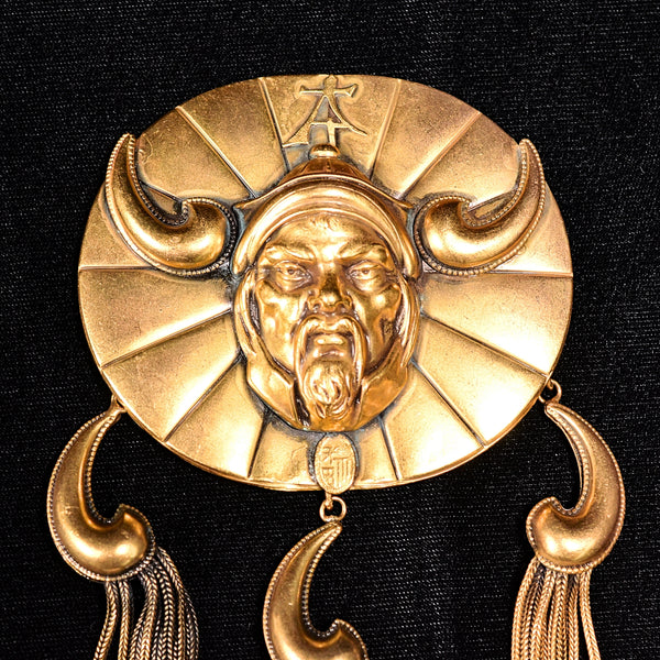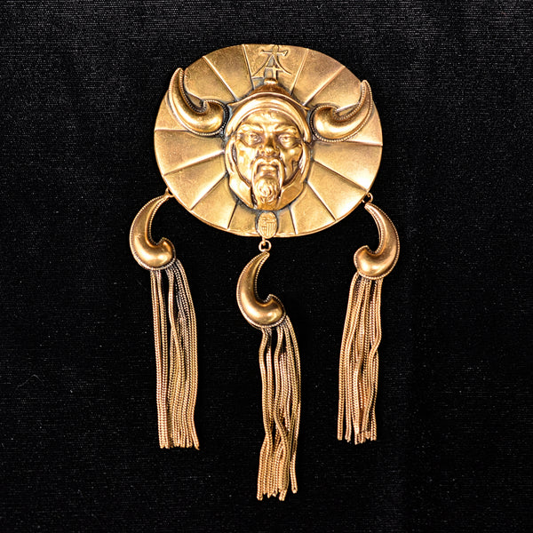 SOLD Vintage Joseff of Hollywood Large Brooch With Tassels, Warrior Statement Piece 7"L
