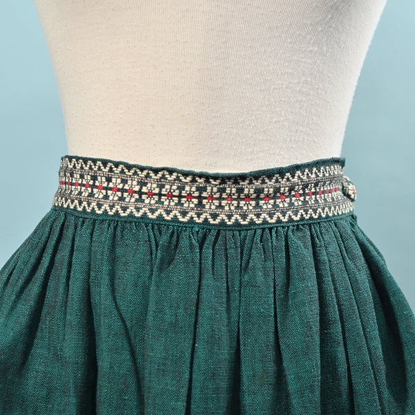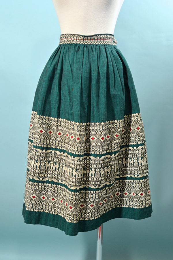 SOLD Vintage Green Guatemalan Skirt, Handwoven Textile Cottagecore Skirt 26" Waist