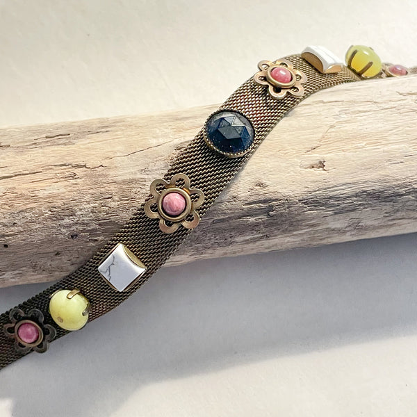 SOLD Vintage Jan Michaels 90s Mesh Choker Necklace, Bronze Mesh + Faux Stones
