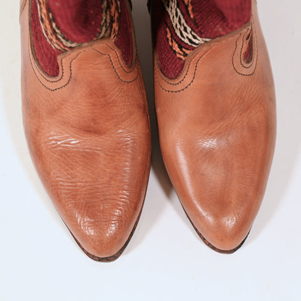 SOLD Vintage Leather Kilim Boots, Southwestern Boho Hippie Ethnic Boots