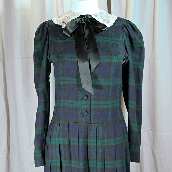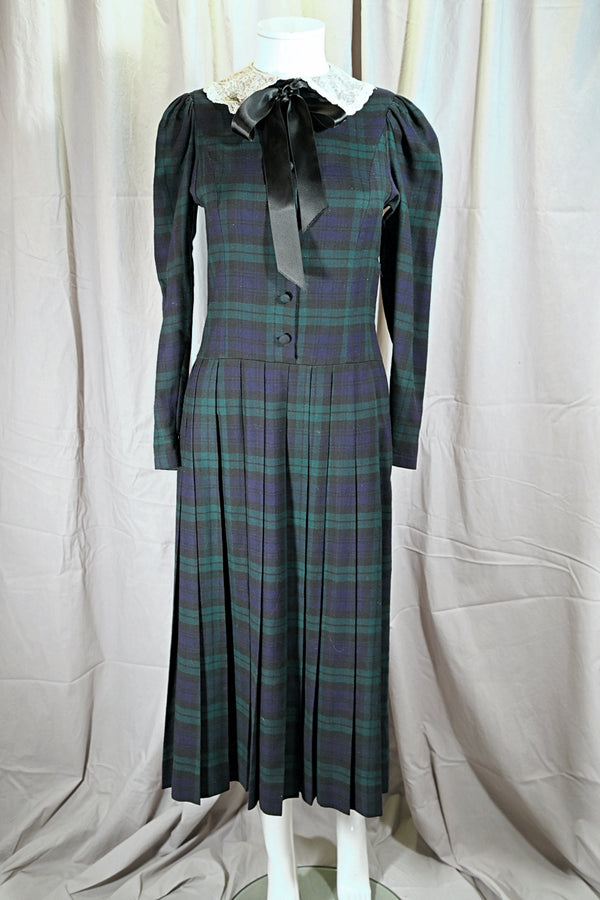 SOLD Vintage Laura Ashley Tartan Plaid Dress, Dark Academia Midi Dress XS