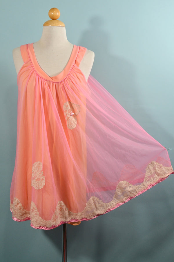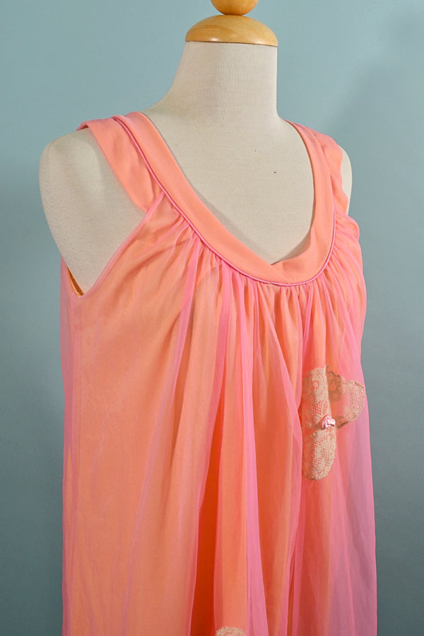 SOLD Vintage Jenelle Peach/Pink Sheer Negligee Nightgown S