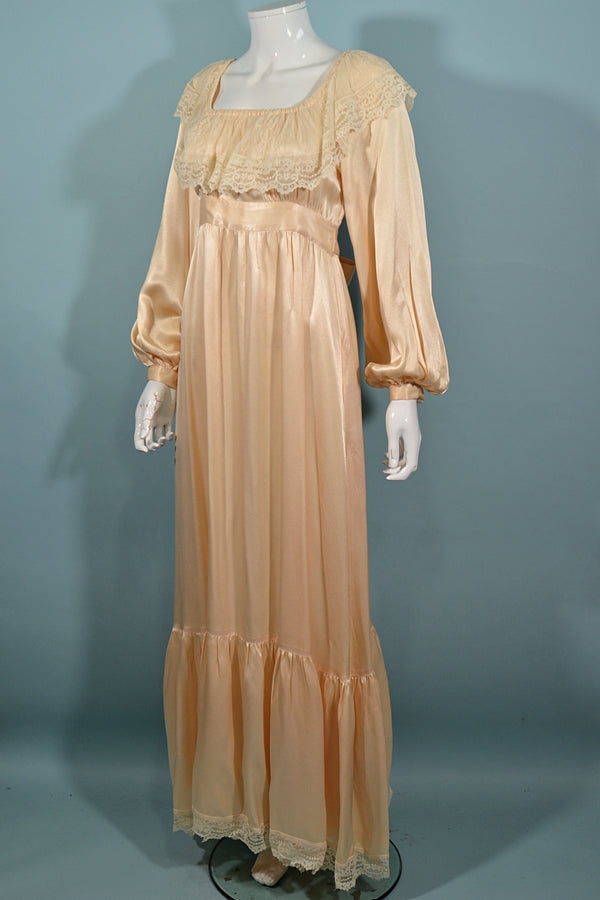SOLD Vintage Gunne Sax Ruffle Prairie Maxi Dress, Peach Party Hippie Wedding Dress 9/S