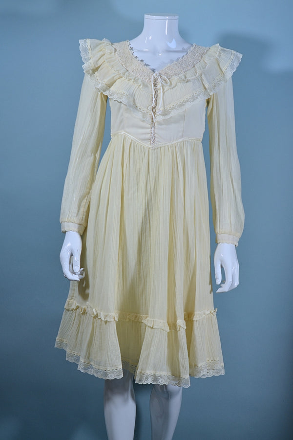 SOLD Vintage Gunne Sax Corset Lace Up Ruffle Dress, Cottagecore Fairy Mini XS/S