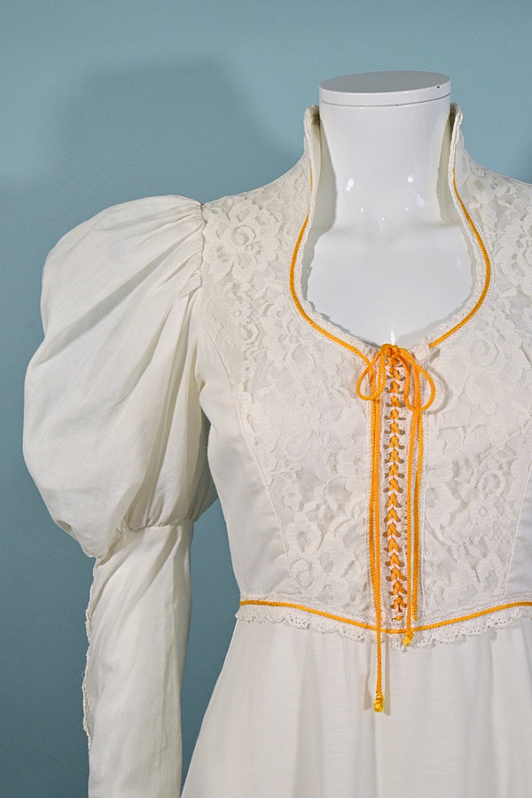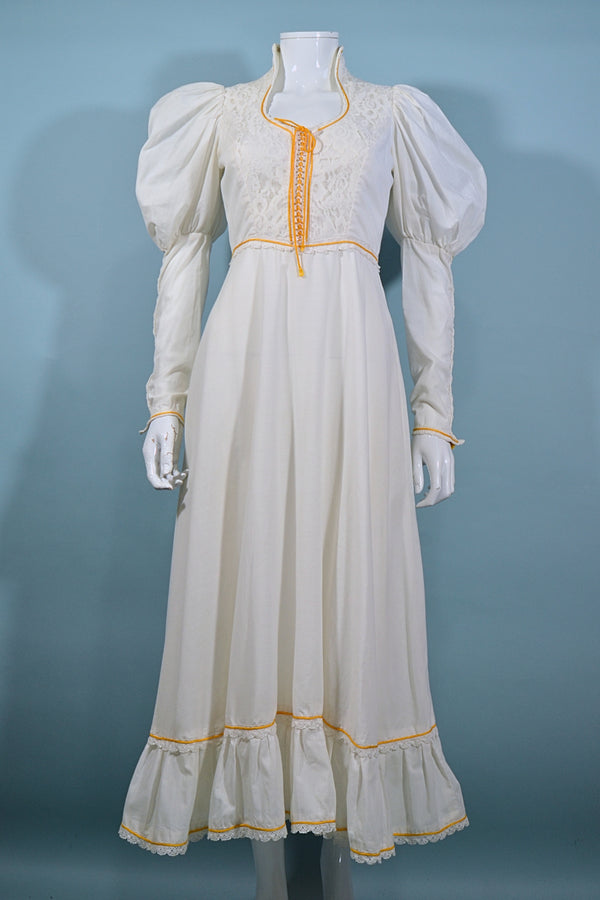 SOLD Vintage Gunne Sax Corset Lace Up Maxi Dress, White Cottagecore Victorian Renaissance Dress S