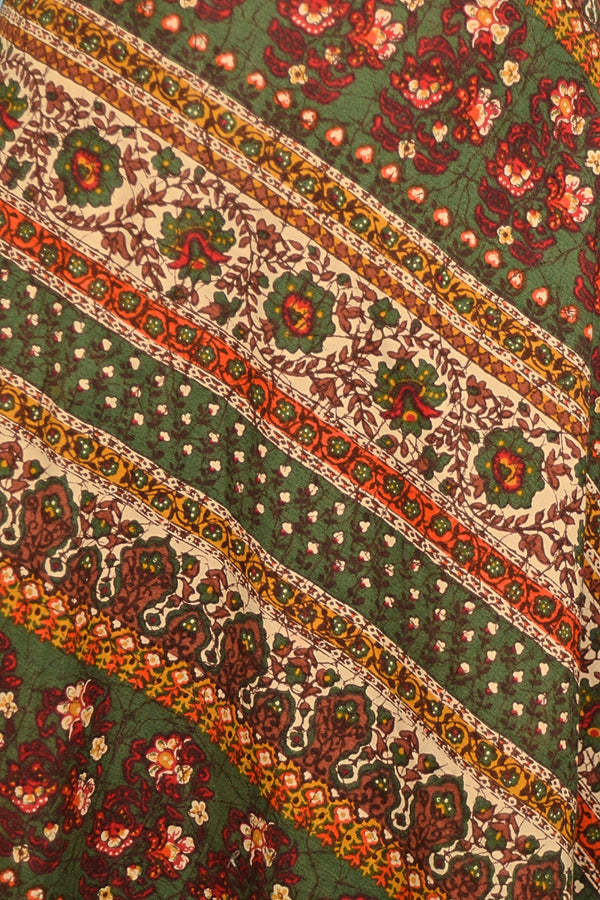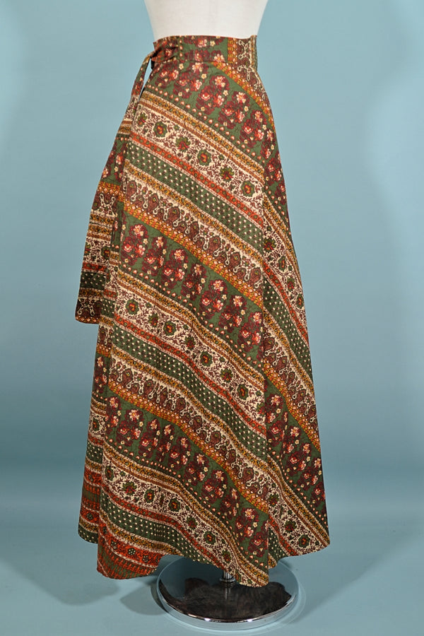 SOLD Vintage Indian Block Print Hippie Maxi Skirt, Wrap Skirt Attached Sash