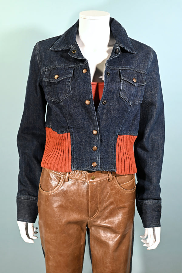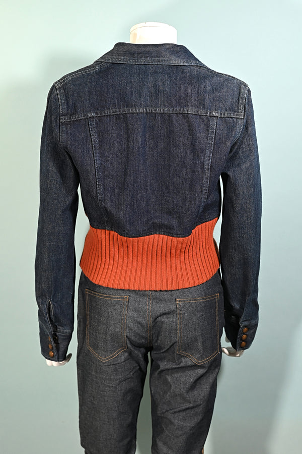 SOLD Vintage RN 80318 Denim Ribbed Knit Jacket, 60s Style Cropped Jacket M