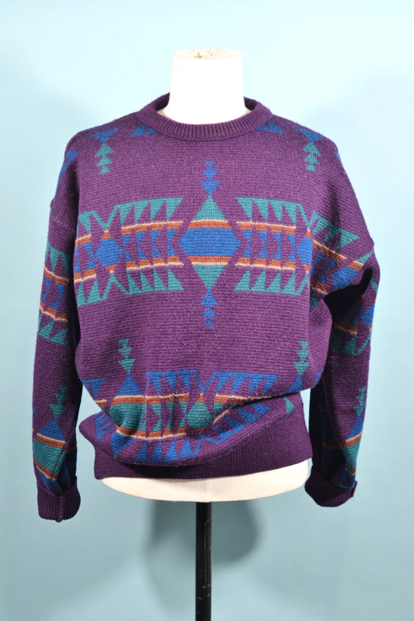 SOLD Vintage Pendleton Indian Blanket Pullover Purple Wool Sweater L