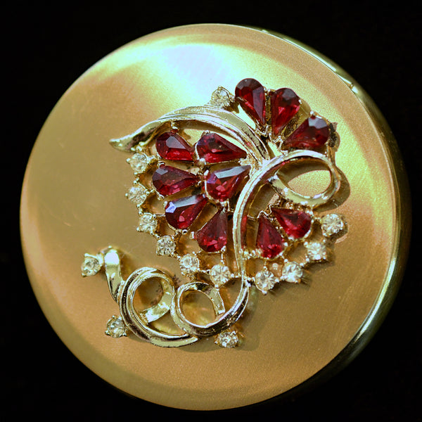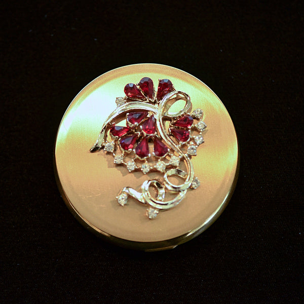 SOLD Vintage Powder Compact Rhinestone Flower New Old Stock, Unused