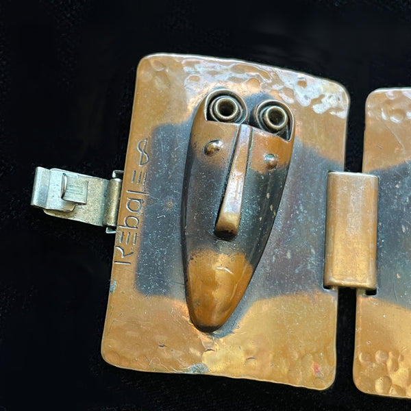 SOLD Vintage Rebajes Tribal Mask Copper Modernist Bracelet