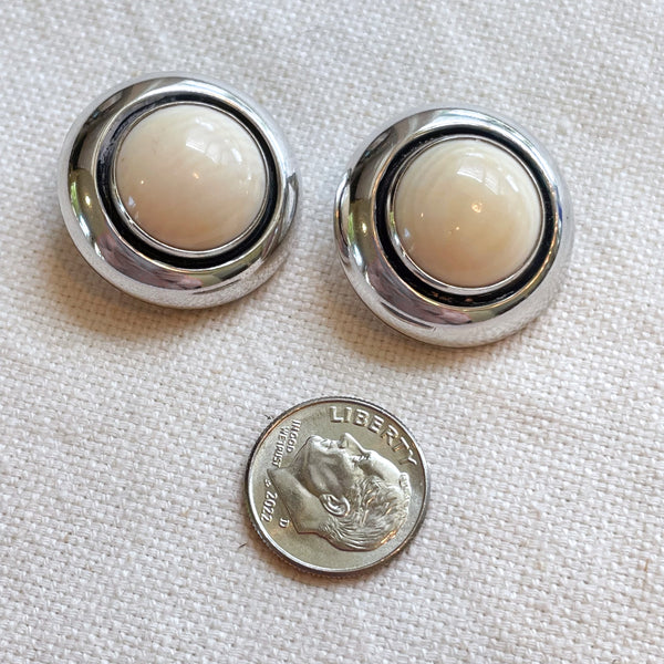 SOLD Vintage Niels Erik From, Sterling Earrings Cream Stone, Danish Modernist Earrings