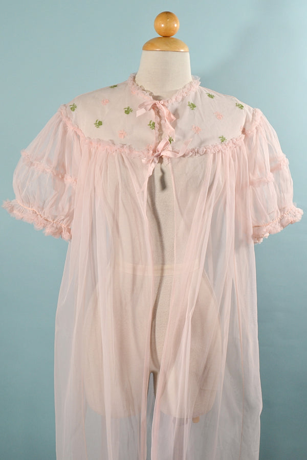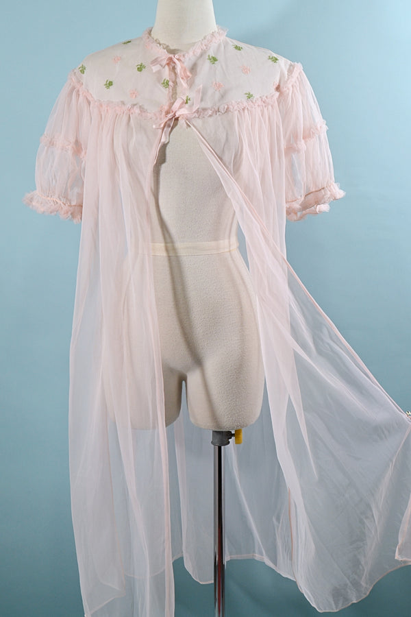 SOLD Vintage Sheer Pink 60's Baby Doll Robe Peignoir by Binstrom 34