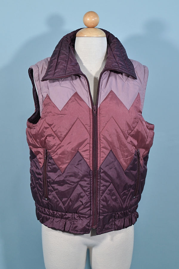 SOLD Vintage Puffer Vest, Chevron Pattern M