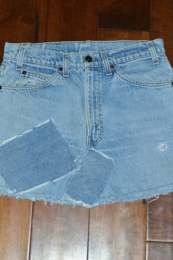 SOLD Vintage Patchwork Levis Denim Skirt, Orange Tag OOAK