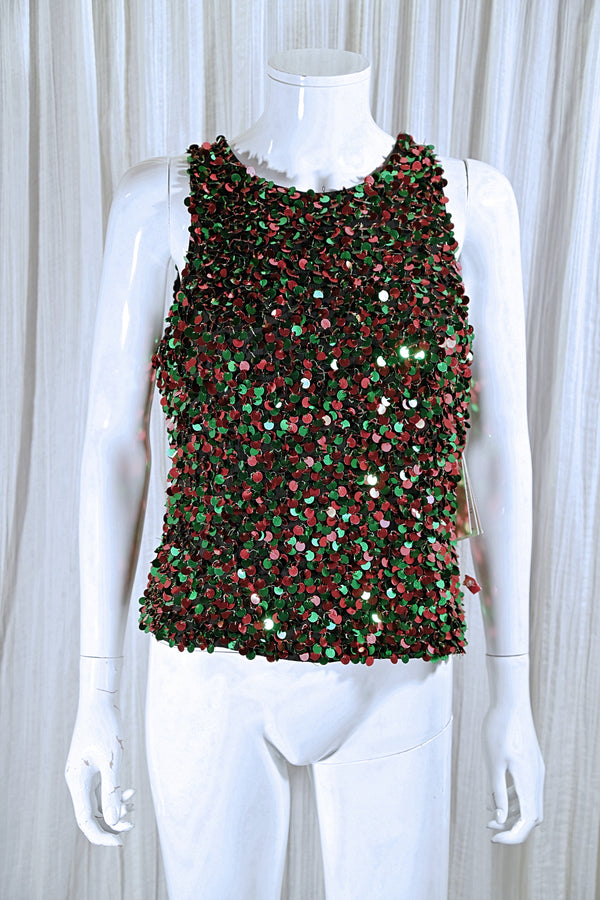SOLD Vintage Red/Green Sequin Sparkle Top, Unworn w/Original Tags, Laurence Kazar L