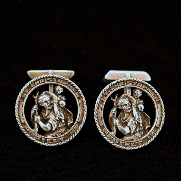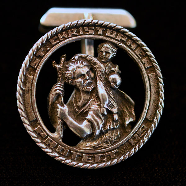 SOLD Vintage Sterling Silver St Christopher Cufflinks, MCM