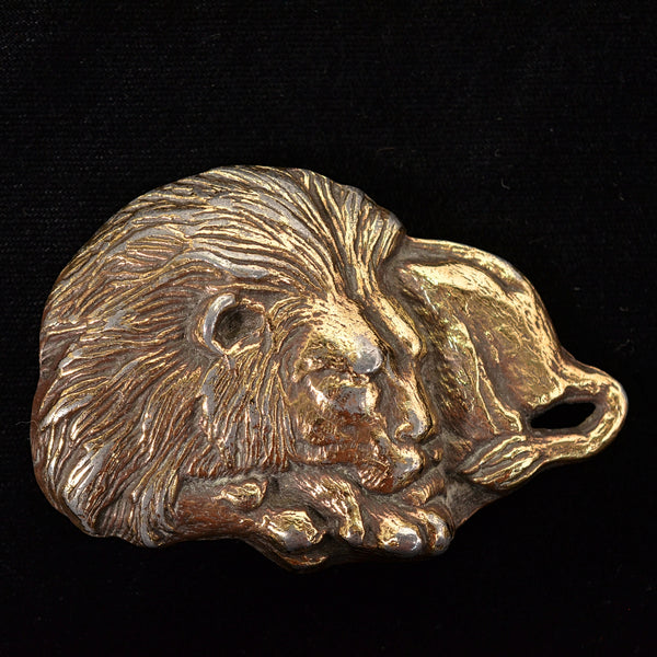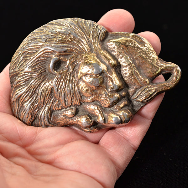 SOLD Vintage Sleeping Lion Brass Hippie Belt Buckle, 129.7 Grams