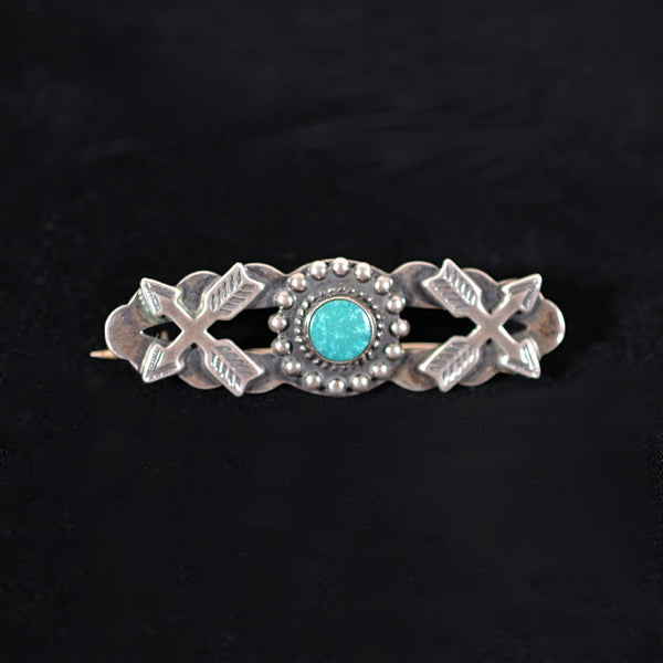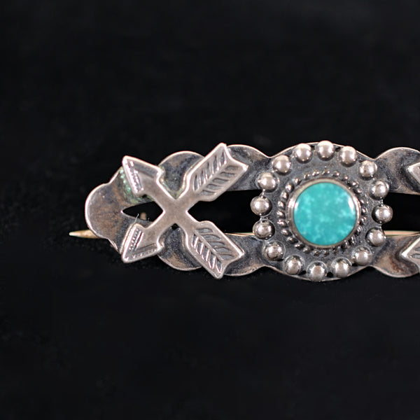 SOLD Vintage Sterling & Turquoise Fred Harvey Era Crossed Arrows Bar Brooch/Pin 8.4 Grams