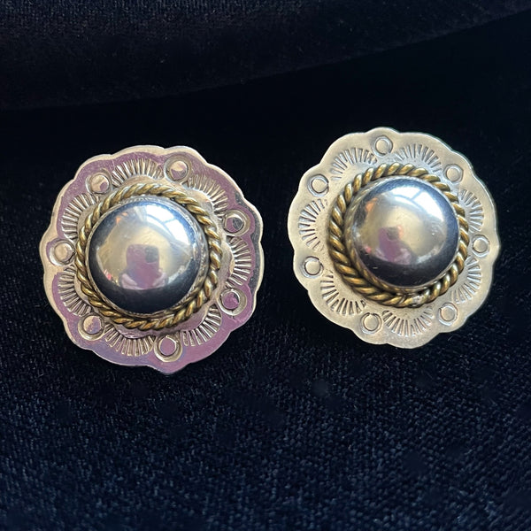 SOLD Vintage Sterling/Brass Stamped Concho Style Earrings