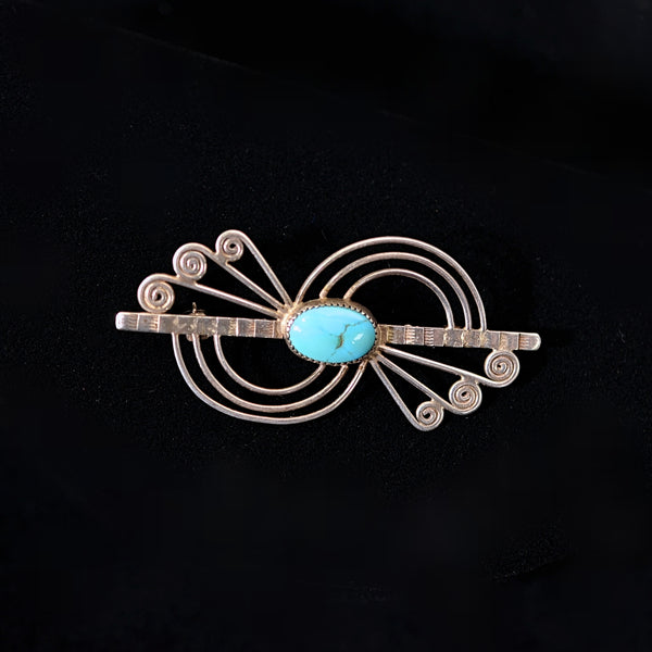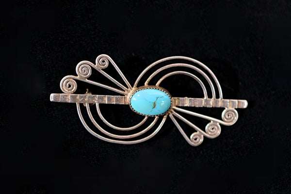 SOLD Vintage Sterling Silver Turquoise Native American Brooch 4.9 Grams