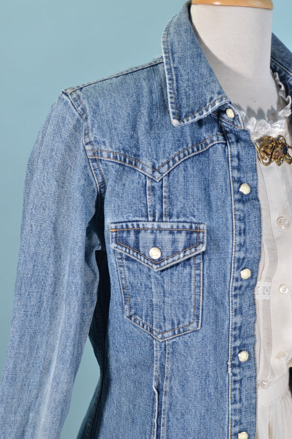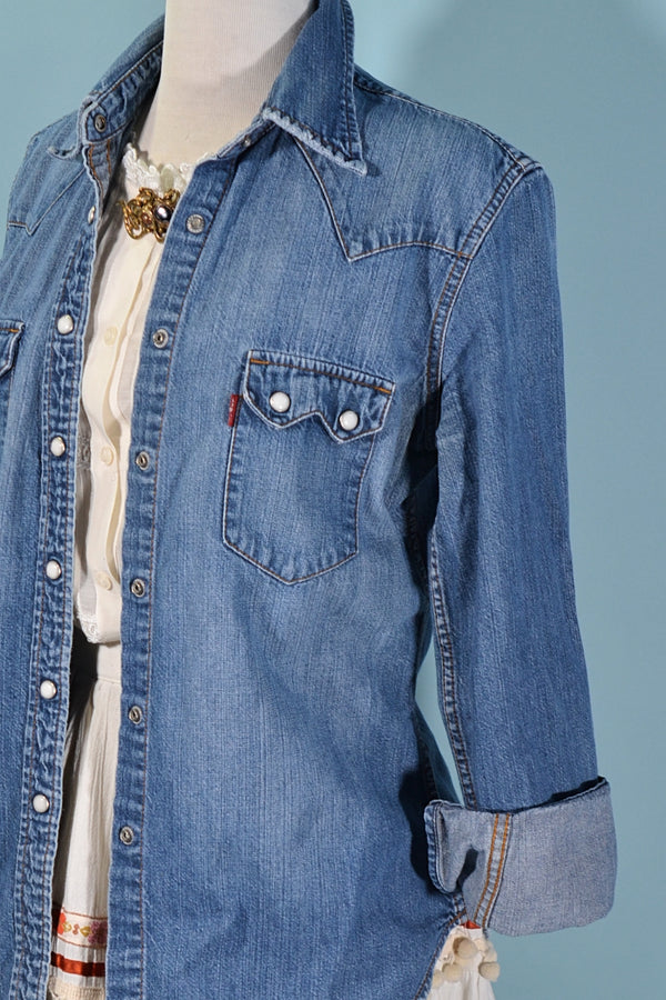 SOLD 90s Levis Denim Pearl Snap Western Blouse/Shirt, Red Tab Y2K M