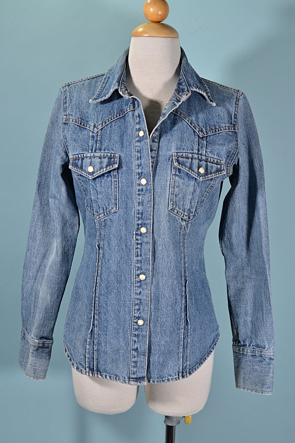 SOLD 90s Denim Western Snap Button Blouse by Arizona