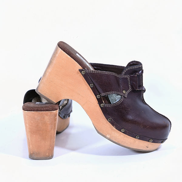 SOLD 90s Steve Madden Brown Leather Clogs SZ 9