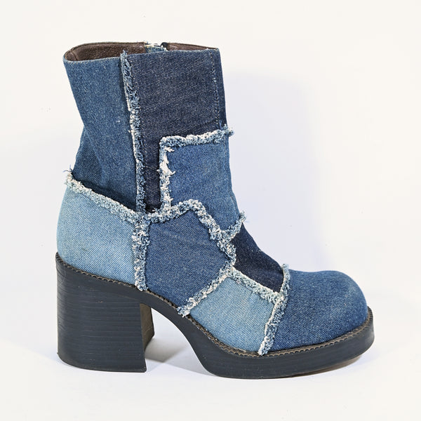 SOLD 90s Rampage Denim Patchwork Ankle Boots, AS-IS Size 8.5