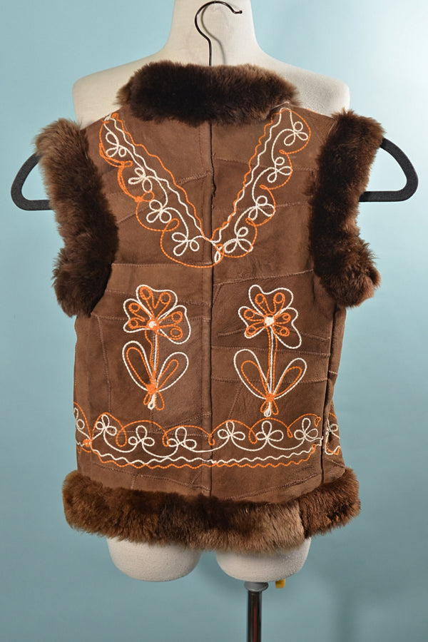 SOLD Children's Embroidered Suede Shearling Vest, Bohemian Hippie Vest