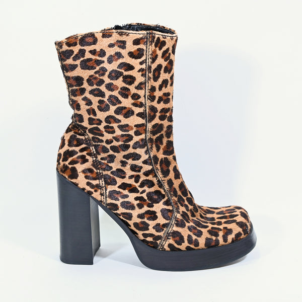 SOLD 90s Steve Madden Leopard Print Platform Chunky Heel Boots, Bratz Style SZ 9