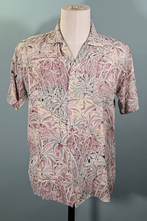 SOLD Aloha Vintage Rayon Hawaiian Shirt, Soft Pastel Tropical Print M