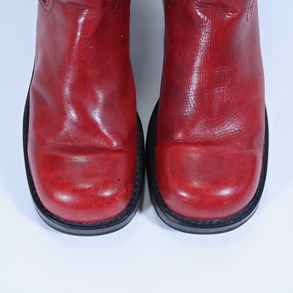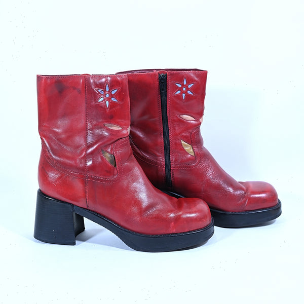 SOLD 90s Red Leather Chunky Heel Toe Platform Ankle Boots, Y2K Bratz Style Size 11M