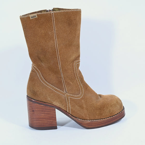SOLD 90s Suede Ankle Boots, Chunky Heel Platform Boots by Soda SZ 8