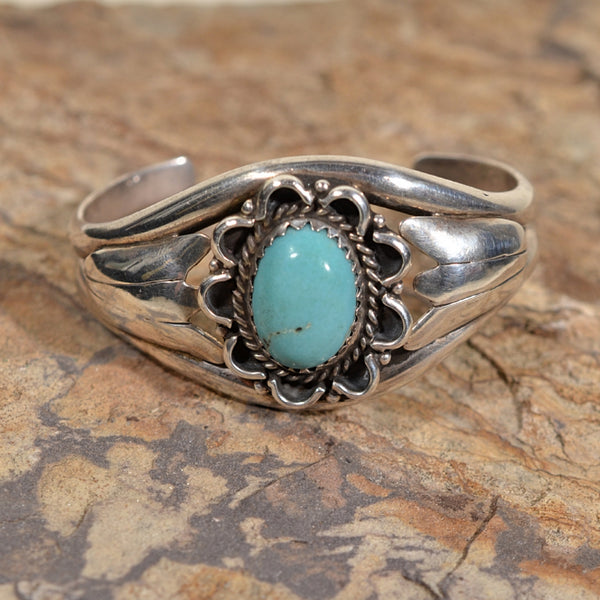 Vintage Sterling Silver Turquoise Native American Cuff Bracelet 40 Grams