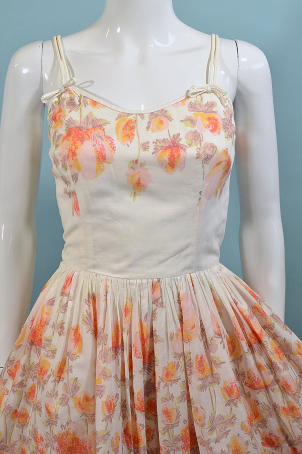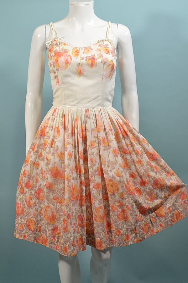 SOLD Vintage 50s Mode O Day Sundress, Floral Fit & Flare Dress 26" W